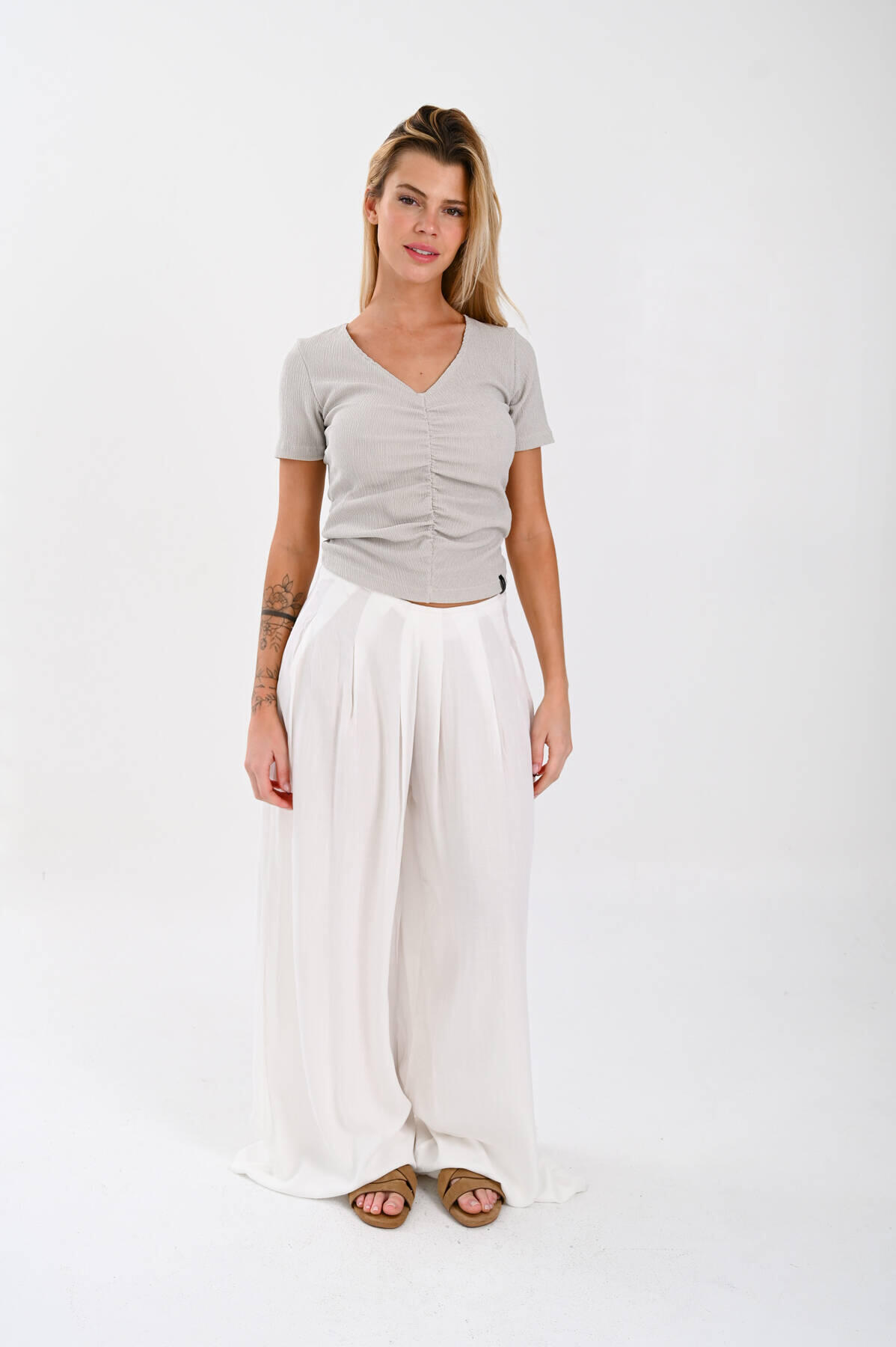 El Pantalón Elisa combina frescura y estilo en un diseño palazzo amplio y elegante. Con pinzas que realzan la silueta y una caída fluida, es ideal para looks cómodos y sofisticados, de día o de noche. Disponible en colores versátiles para que armes tus mejores outfits.