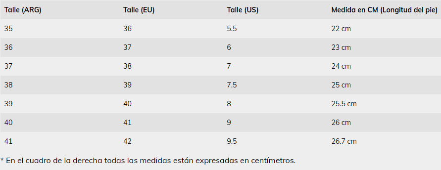 Elige tu talla habitual para un ajuste ideal. Si tienes el pie ancho, considera una talla más grande.
